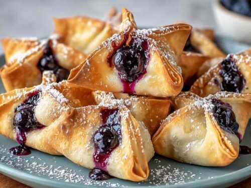 When my son asked me to recreate those amazing dessert dumplings from our local dim sum place, I knew I had to get creative. After several kitchen experiments, these Crispy Air Fryer Blueberry Cream Cheese Wontons became our family’s new obsession.