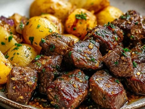 This garlic butter steak bites and potatoes recipe proves that restaurant-quality meals don’t require complicated techniques or expensive ingredients. The combination of perfectly seared steak and crispy potatoes, all brought together with aromatic garlic butter, creates a satisfying dinner that feels both comforting and elegant. Give this recipe a try tonight and watch it become a regular in your dinner rotation!