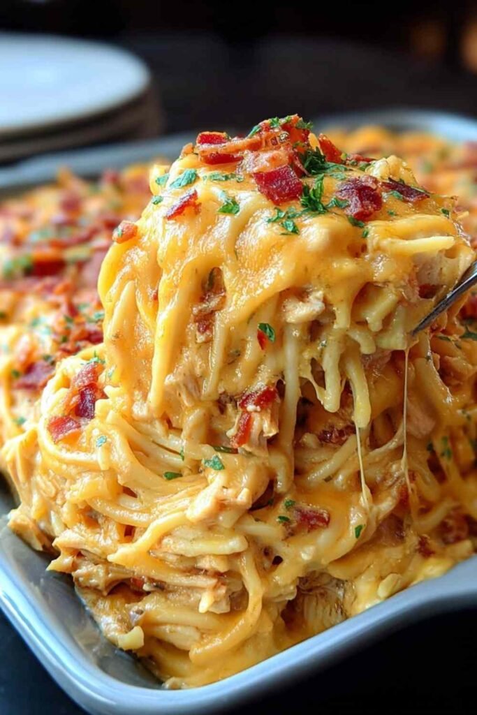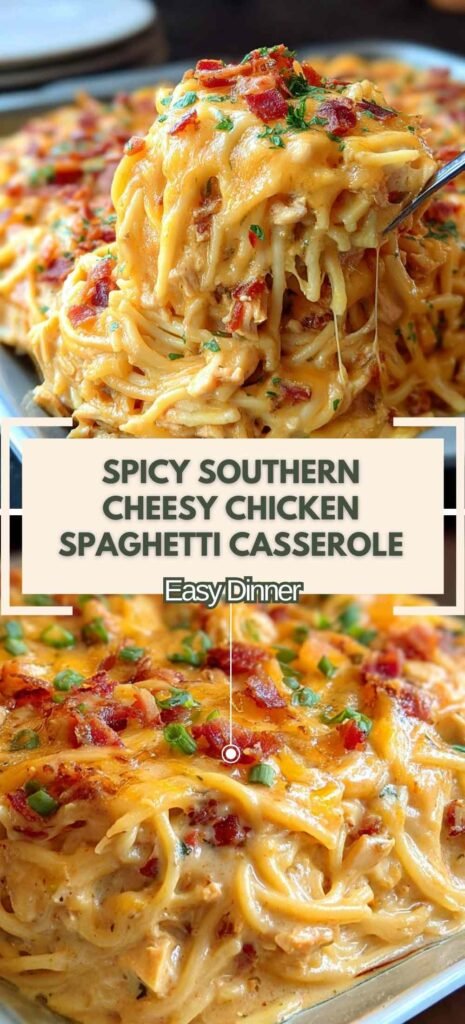 Spicy Southern Cheesy Chicken Spaghetti Casserole
